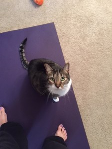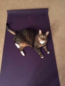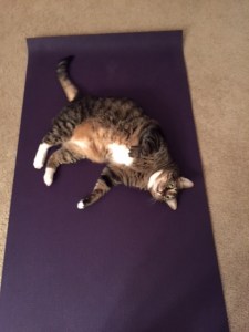 To my surprise, I love the feel of their little bodies and can move with and around them. Whereas a person’s foot on my mat in a class would annoy me, these little soft paws and bellies are comforting. So far, they have mastered Sphinx (what cat could not?), Puppy (like Sphinx, but with butt in air), Half-Assed Side Plank (not unlike mine) and, of course, Savasana (the cat’s natural state, resting).I now look forward to my routine every morning. I am pleased, not just that I stretch and feel good, but that I am stretching into a new way of being – freedom to move (in my pajamas!) at my convenience. I see myself doing this for the rest of my life, even if I’m away from home.