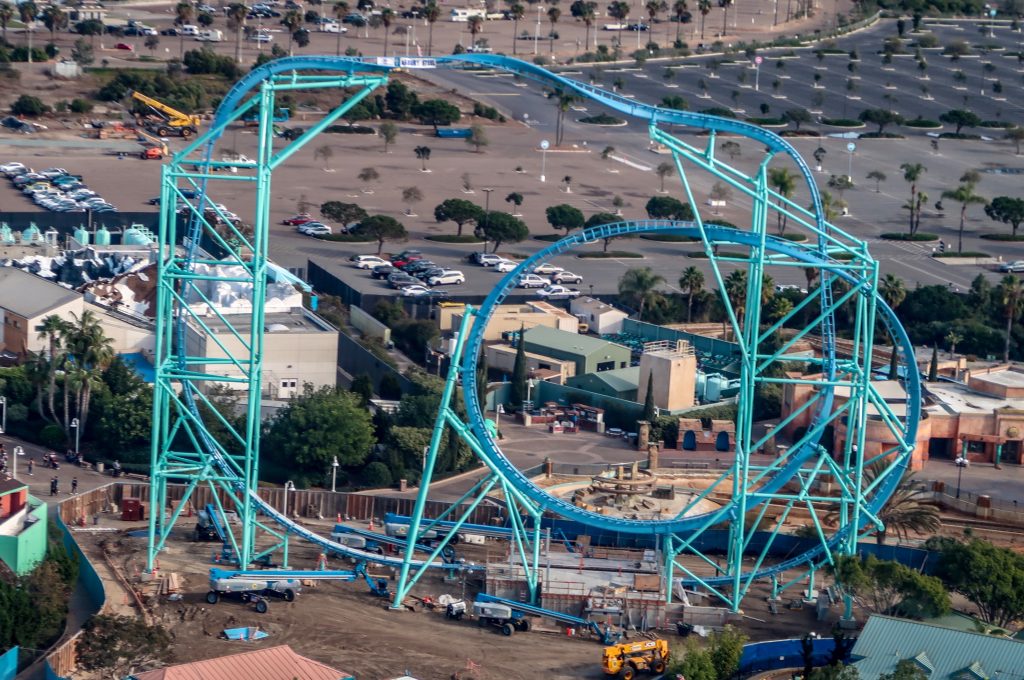 For a few seconds I wondered if it was a mistake and considered barreling straight through. You are not even real police! But because I did not want to hit other seniors or land in the bay, I was swept up in the caravan of vehicles shooting off the main road into a big circle east. The exits and entrances here loop around, diverge and converge quickly, and it’s hard to keep track of what direction you are driving in, especially if you don’t take the side roads often. Soon I was hurtling alongside the San Diego River, past Sea World with its other-worldly new roller coaster rising into the sky. It’s the Electric Eel, due to open in a few days, “… the tallest, fastest roller coaster in Sea World’s history, a multi-launch coaster with high-energy twists, electrifying loops and inversions,” according to their website.