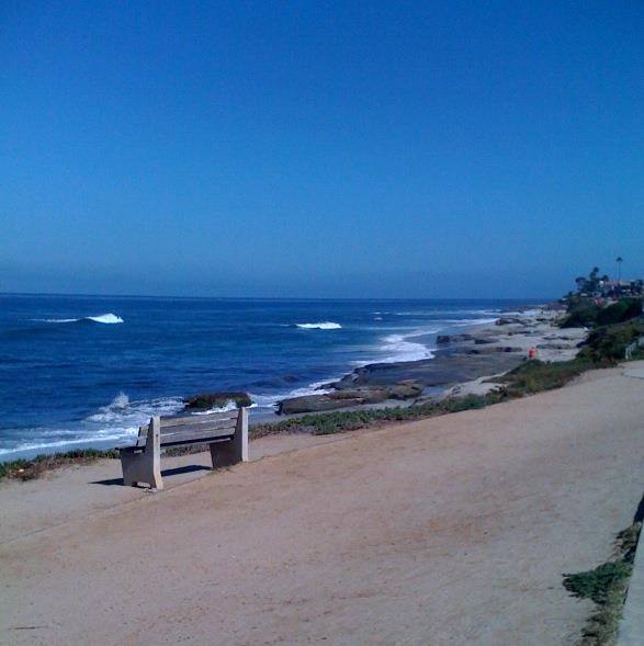 A few years ago, in between jobs, I started hanging out at nearby Mission Bay during the day when I needed a break from my computer. I’d take a beach chair or blanket, a sandwich, a notepad and pen and sit under a tree for an hour or two. Peaceful, balmy, fewer distractions than at the oceanfront beach (also nearby). If people came along, they kept a respectful distance, cycling or strolling by on the path, arranging a lunch picnic at one of the many tables. Kayakers glided by on the glistening water.