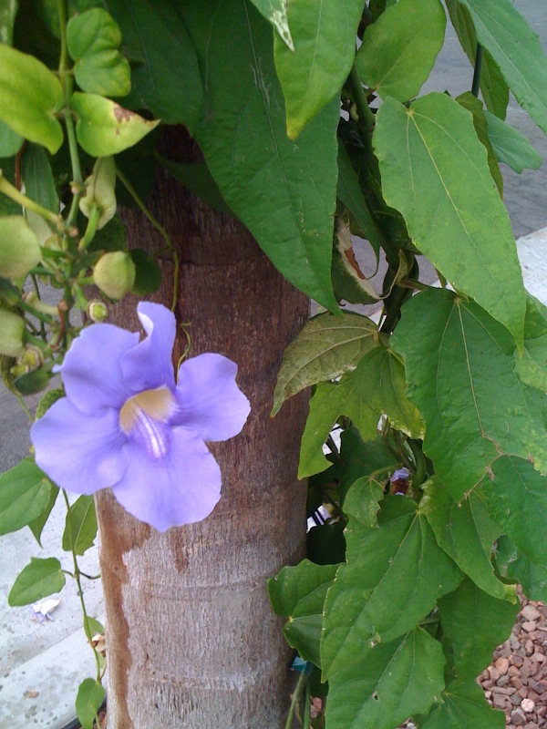 So I’ll break off a few leaves and blossoms and take them with me to the nursery. Now that the sentry has shown its colors, I want to fully acknowledge it. And I want to know how tall it will grow. How many years will it stand? And does it have to be protected from seasonal hazards? Bugs, traffic and fire pollution, drought? It seems to be doing fine without water, so far anyway.